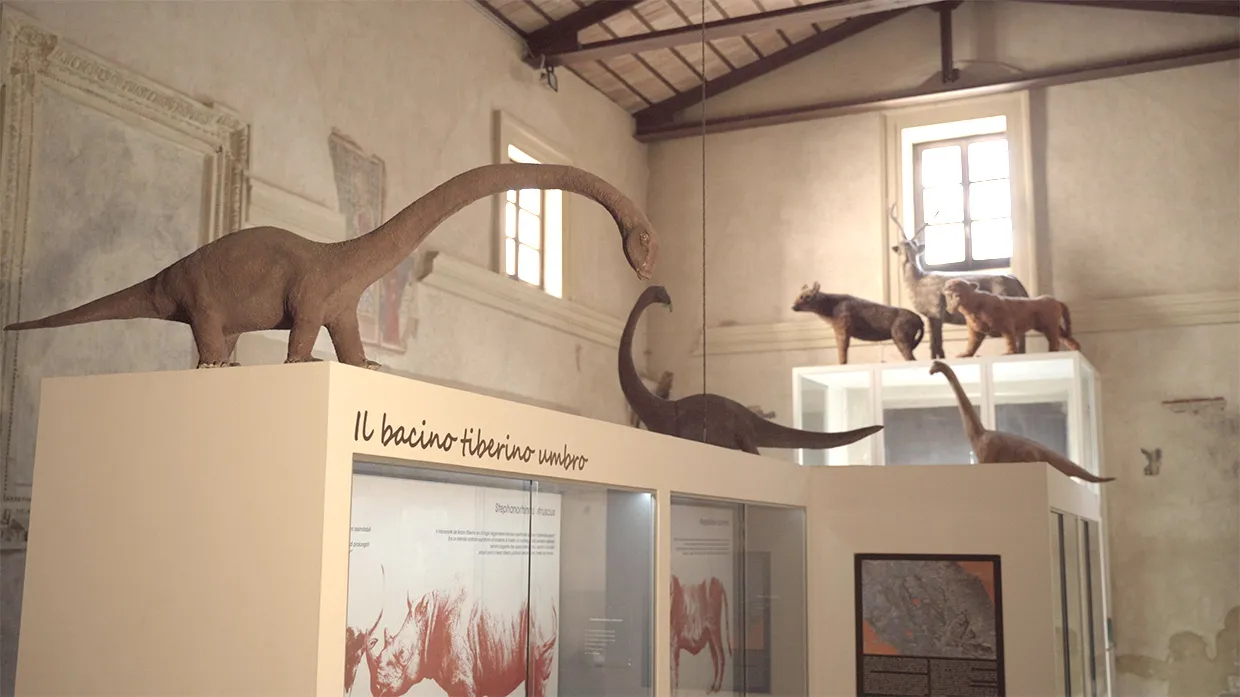 L’Umbria, le sue trasformazioni geologiche e gli animali che popolavano il territorio fino a 300mila anni fa sono al centro del percorso museale del Paleolab. Dal 2002 l’ex chiesa di San Tommaso ospita il primo museo delle raccolte paleontologiche dell’Umbria meridionale; pensato soprattutto per i più piccoli, ma estremamente interessante anche per gli adulti, l’allestimento, completamente rinnovato nel 2012, mostra quali sono i fenomeni che trasformano la Terra e permette di osservare da vicino i fossili degli animali vissuti nel nostro territorio. Se gli ammoniti nuotavano nel mare che copriva l’Umbria fino al momento della loro estinzione, avvenuta 65 milioni di anni fa, ampio spazio è dato ai fossili degli animali che, più tardi, hanno popolato il Bacino Tiberino: tra i pezzi più importanti, lo scheletro completo di un Axis nestii, rinvenuto in connessione anatomica, cioè fossilizzatosi nella medesima posizione in cui l’animale è morto.