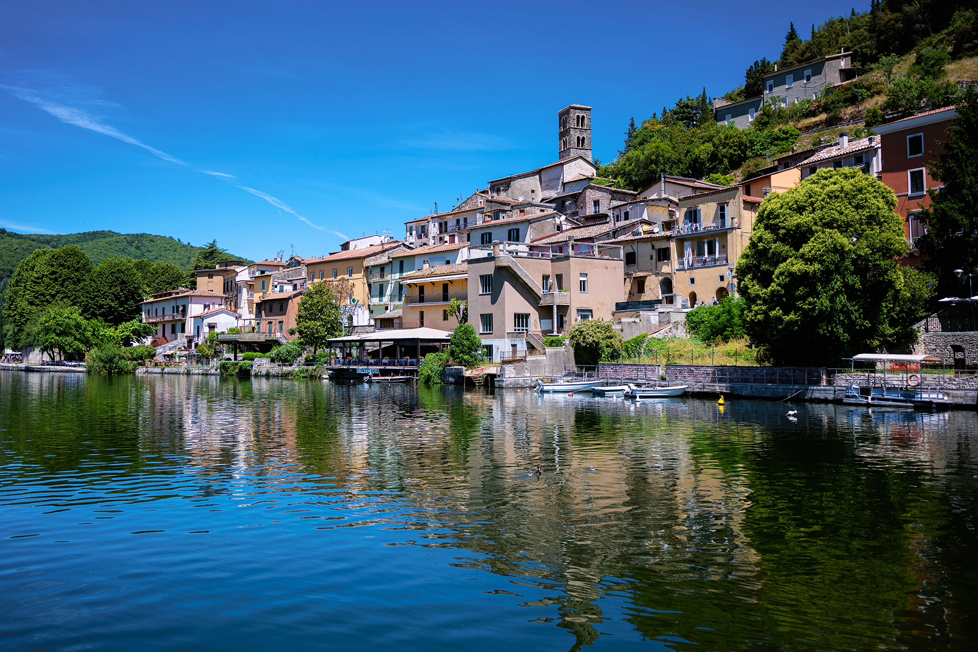 Sulla sommità del monte Luco si erge la possente Rocca che nel Medioevo presidiava il territorio. Ora impone la sua presenza. Da qui lo sguardo domina una vista ineguagliabile: il lago, con la sua forma bizzarra e i suoi bracci allungati, appare incastonato tra verdi rilievi e vallate che compongono un paesaggio meraviglioso. Il monte che si staglia dalla parte opposta dell’abitato e che sembra galleggiare è il Caperno. Dai residenti viene chiamato “la montagna dell’Eco” per la sua capacità, raccontano, di restituire un’eco se gli lanci un grido.