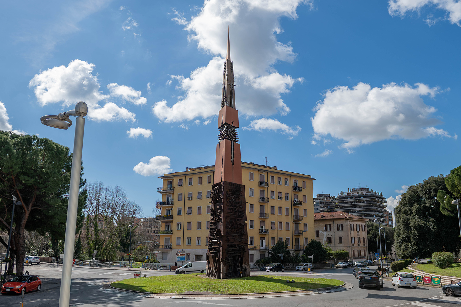 The combination of a master of modern sculpture and the experience of Terni’s master forgers, foundrymen, alloy and metal experts and welders, contributed to realising a work of art that is testimony to both Terni's past and its projection towards the future and modernism. Its position, at the entrance to the city centre which coincides with Corso del Popolo, designed by two masters of contemporary architecture such as Mario Ridolfi and Wolfgang Frankl, also responds to this aim.