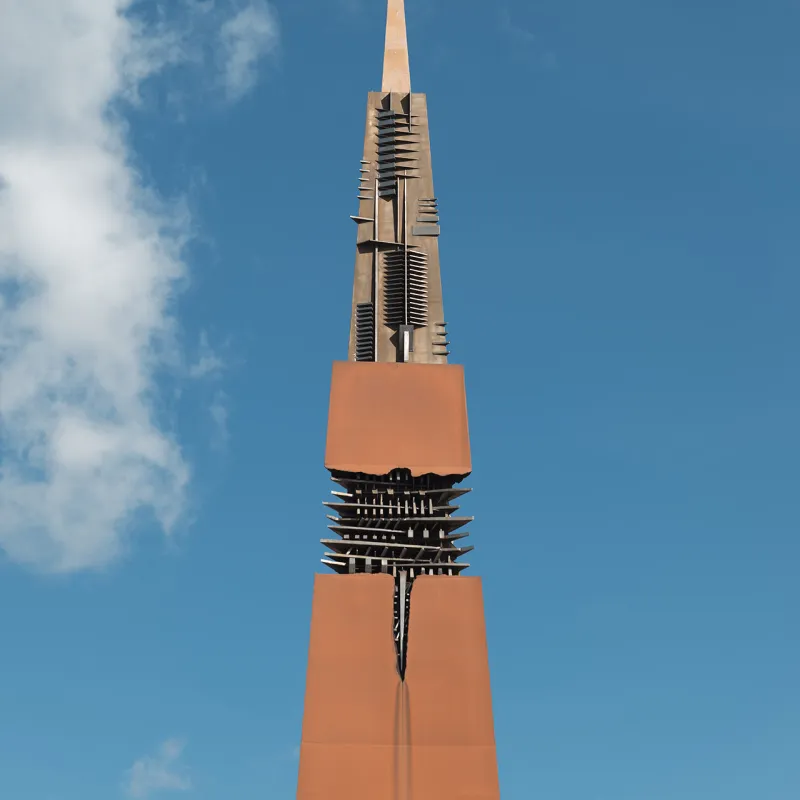 A total weight of ninety tons for a work of art thirty metres high; thirteen thousand hours of work to realise a project conceived by a sculptor like Arnaldo Pomodoro, whose works of art have been installed in cities like Melbourne, Los Angeles , New York, Rome and San Paolo, making them even more beautiful.