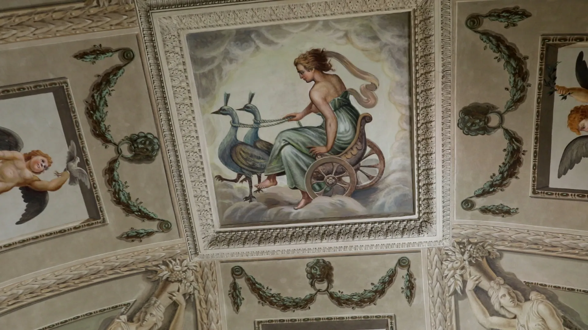 The inside halls maintained their richness with cycles of frescoes attributed to the Flemish painter Karel Van Mander, retouched and partly reinterpreted during restoration, which is why part of the original picture has been lost.
