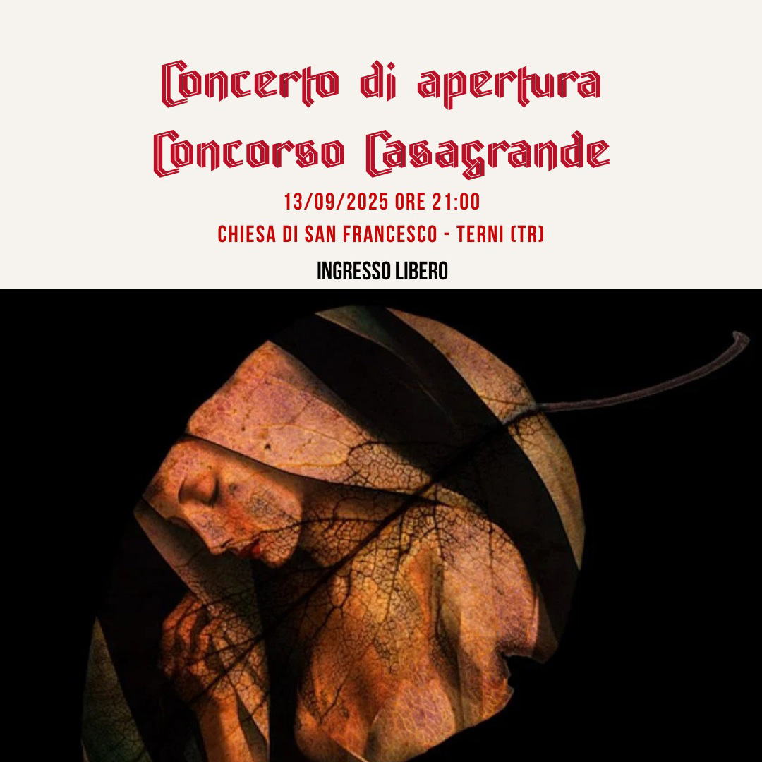 Il Casagrande, uno dei pochi concorsi pianistici internazionali italiani ammessi a far parte, sin dall’anno 1975, della prestigiosa Fédération Mondiale des Concours Internationaux de Musique di Ginevra, rappresenta una delle più importanti manifestazioni artistiche e musicali dell'Umbria. L’edizione 2025 avrà inizio sabato 13 settembre con la cerimonia inaugurale presso la Sala Caffè letterario della bct di Terni, alle ore 18.00, in presenza dei 28 concorrenti selezionati e della Giuria Internazionale. Alle ore 21.00 nella Chiesa di S. Francesco avrà luogo il Concerto soli, coro ed orchestra del Conservatorio Briccialdi, ad ingresso libero.