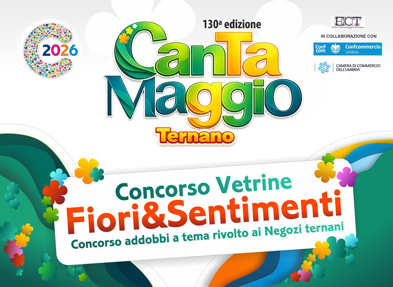 In occasione della festa del Cantamaggio ternano 2026 l’Ente Cantamaggio Ternano, in collaborazione con Confartigianato Terni e Confcommercio Terni, al fine di rendere sempre più accogliente ed attrattiva la città durante le giornate del Cantamaggio, indice la 2° Edizione del Concorso per la “Migliore vetrina dedicata al Cantamaggio: Cantamaggio tra fiori e sentimenti”.
