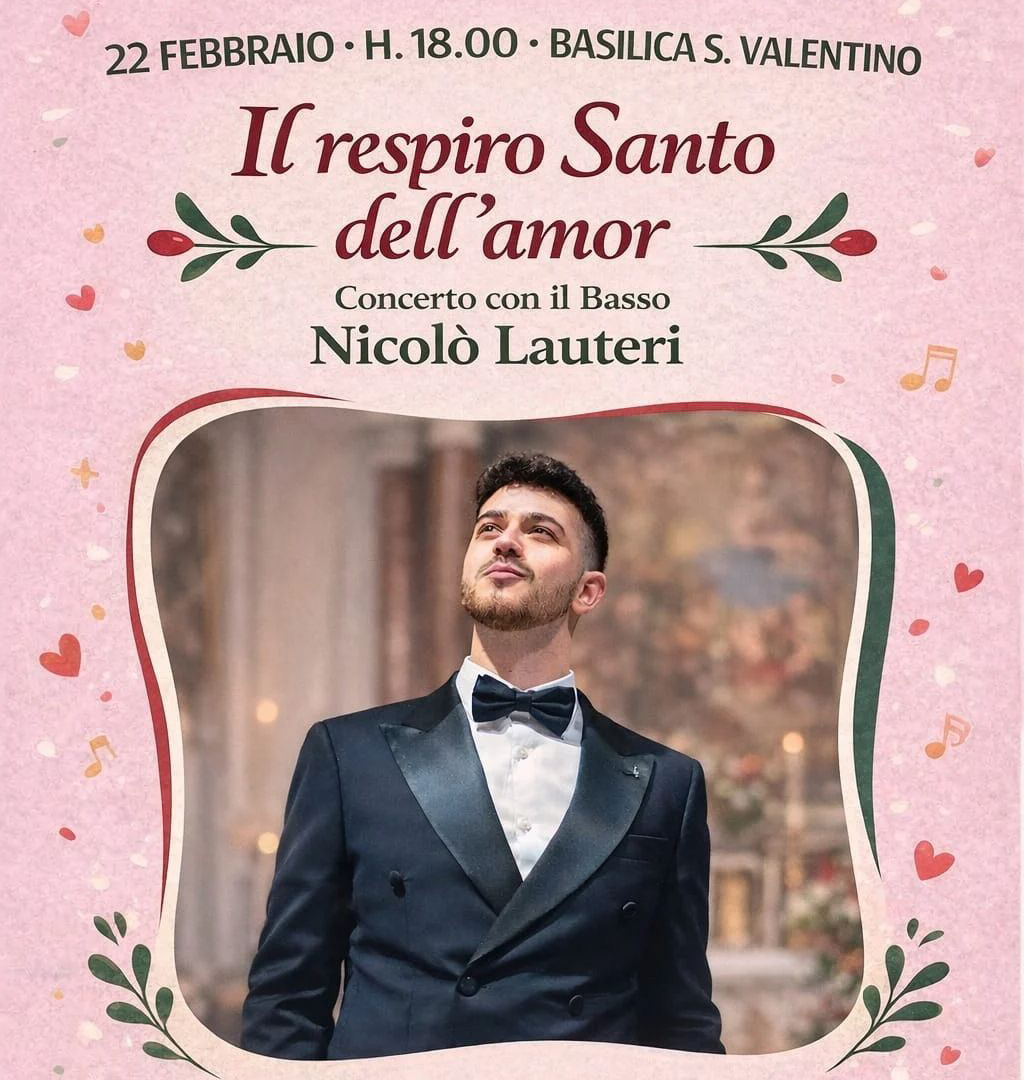 Protagonista della serata sarà il basso Nicolò Lauteri, interprete di grande sensibilità e profondità espressiva, capace di coniugare rigore tecnico e intensa partecipazione emotiva. La sua voce, calda e avvolgente, guiderà il pubblico in un percorso musicale che richiama i temi dell’amore, della spiritualità e del dialogo tra sacro e umano, in perfetta sintonia con il luogo e il tempo liturgico.